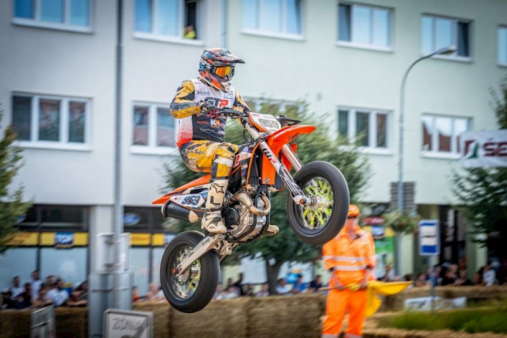 Nečekané přeřazení do nejvyšší třídy S1, statečný boj s elitou i odvážné počínání na skoku. Josef Hanzal ze stáje GT2 Motorsport si užil letošní vystoupení při podniku Supermoto v Moravském Krumlově a také potěšil fanoušky.