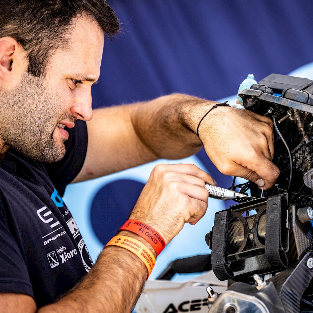 Engel má za sebou letošní ročník Mezinárodní motocyklové šestidenní. Těch za svou kariéru zvládl už devět, což mu dalo potřebný základ a zkušenosti k servisování závodního speciálu pod časovým tlakem.