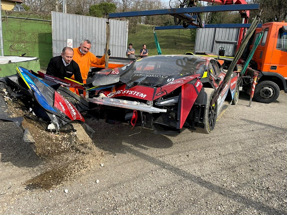 Velmi těžkou nehodu měl pilot týmu Mičánek Motorsport powered by Buggyra Bronislav Formánek v Imole. Z děsivě vypadající havárie vyvázl s lehkými zraněními, nové Lamborghini Huracán je ale zničené.