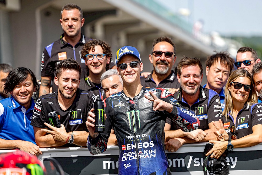 Fabio Quartararo pokračuje na vítězné vlně. V úvodu závodu mu sice byl vyrovnaným soupeřem Francesco Bagnaia, jezdec Ducati ale poté upadl v první zatáčce. Od té doby už Francouze nikdo neohrožoval a získal tak třetí triumf v sezoně.